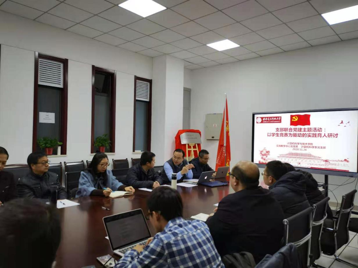 (通讯员 高悦)11月26日下午,计算机科学系党支部与实践教学中心党支部在南校区E楼III-212会议室举行了“以员工竞赛为驱动的实践育人”研讨交流会,参加活动的有计算机科学系党支部支委成员、实践教学中心党支部全体党员及竞赛创新中心骨干教师等。