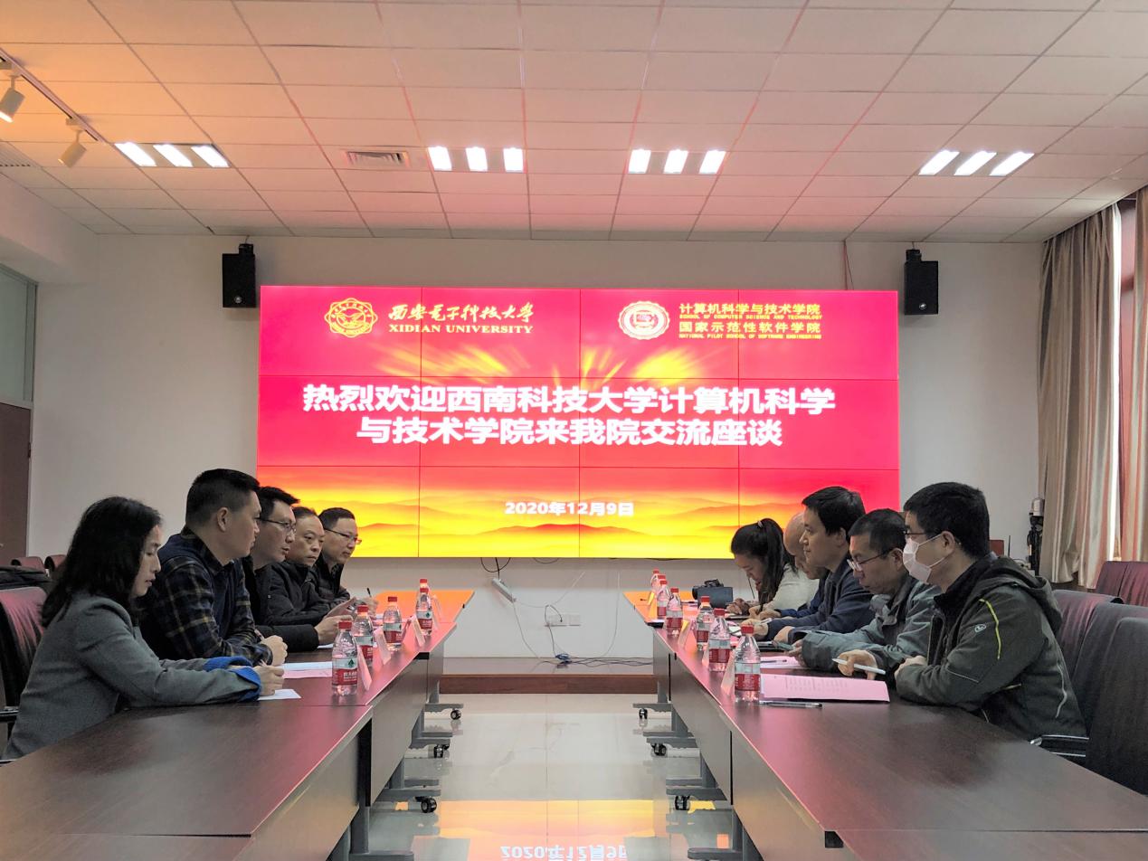 (通讯员 齐富 贠琳红)2020年12月9日上午,西南科技大学足球赌注网站副经理赵旭剑一行来公司调研,双方就特色化示范性软件公司建设、本科公司产品和工程专业认证等工作进行座谈交流。公司副经理宋胜利、嵌入式计算技术研究所所长万波、网络工程系主任权义宁、软件工程系副主任褚华、工程专业认证骨干教师付少锋、本科公司产品办公室主任陈龙等参加本次座谈会,会议由副经理宋胜利主持。