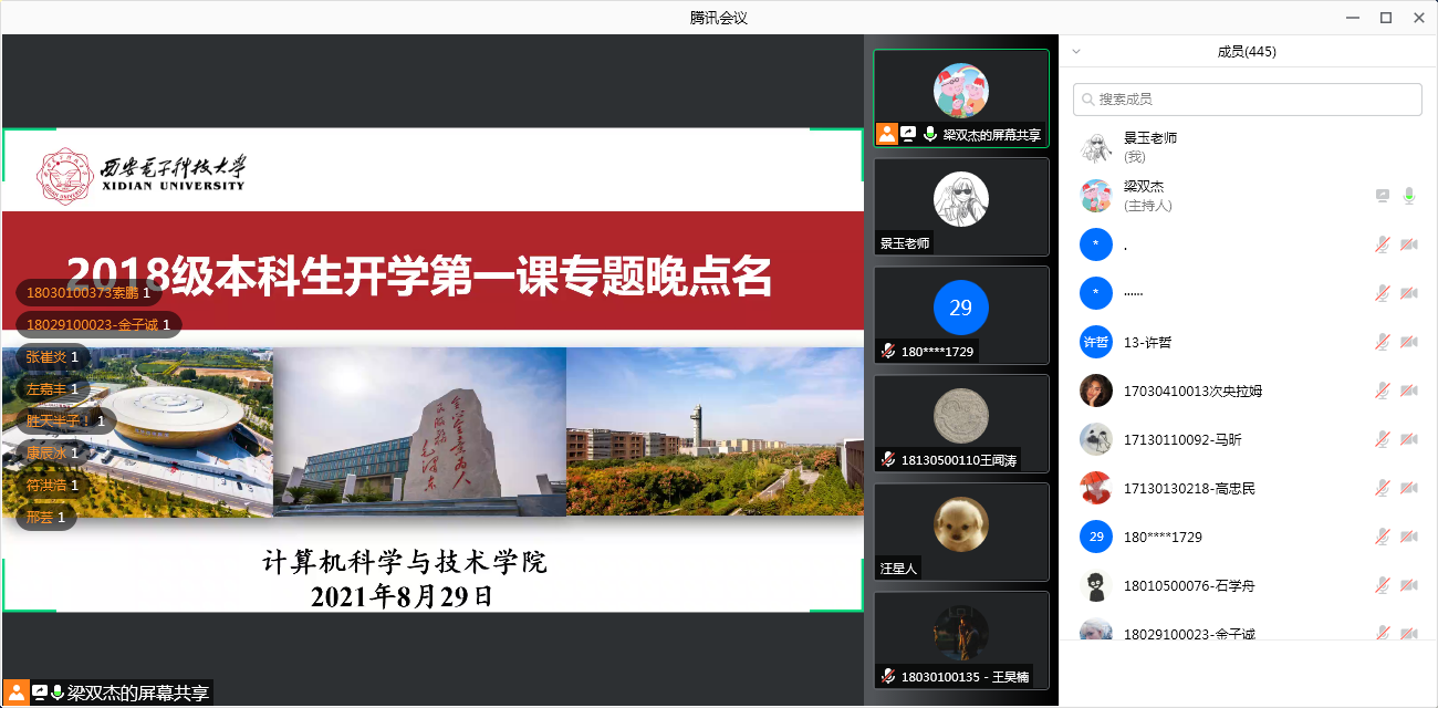 (通讯员 景玉 张力月)2021年8月29日下午,足球赌注网站面向2018级本科生开展了线上“开学第一课”专题晚点名活动。三位本科生辅导员围绕疫情防控、安全教育、升学深造、就业择业等多个方面向同学们介绍了本学期的重点工作任务,引导同学们早知道、早准备、早规划。