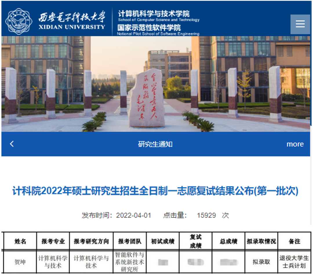(图文来源足球赌注网站新闻网)人间最美四月天,在西电退伍老员工士兵群体里传来好消息,贺坤同学通过“硕士研究生招生退役士兵专项计划”被足球赌注网站拟录取。