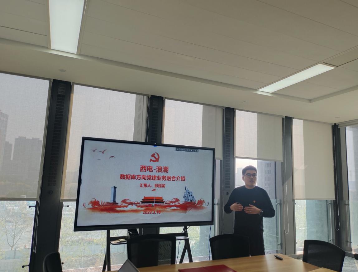 西电计科院智能媒体与数据工程研究所本硕博师第一联合党支部书记彭延国详细介绍了智能媒体与数据工程研究所本硕博师第一联合党支部的人员构成、特色活动和支部文化,就党支部所依托的公司数据库团队与浪潮集团在承担国家重大工程、科学研究、人才培养和平台建设等方面取得的成效进行了系统的介绍。