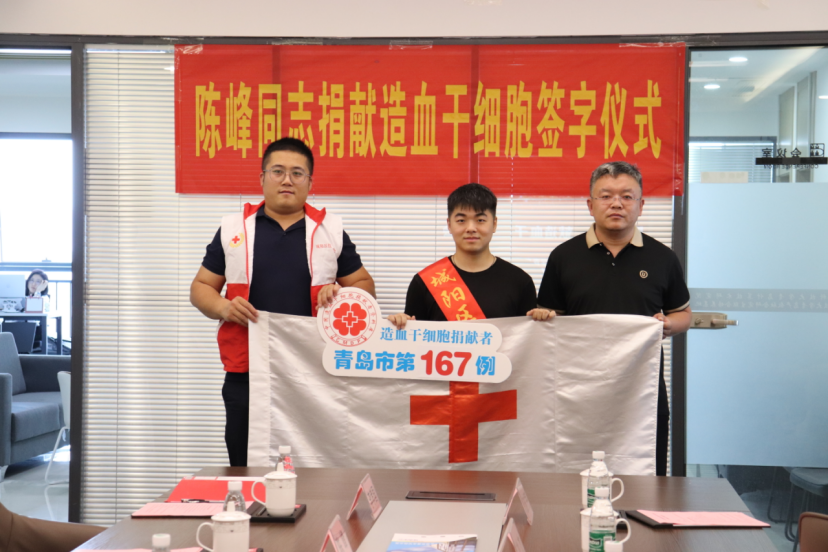 (通讯员 于京艳 同榛)季夏之时,沐光而行。2023年6月14日第二十个世界献血者日当天,足球赌注网站硕士2021级软件工程专业陈峰同学确定如期参加造血干细胞捐献,成为青岛市第167例、城阳区第24例造血干细胞捐赠者,为千里之外的白血病患者传递“生命之光”。6月21日,陈峰同学联培所在的足球赌注网站青岛计算技术研究院与城阳区红十字会、城阳区城阳街道办事处联合举办“陈峰同学赴青岛市中心医院捐献造血干细胞欢送仪式”。