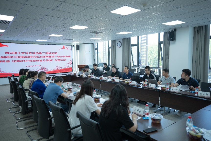 (通讯员 周小科)为贯彻落实习近平总书记关于党纪学习教育的重要讲话和重要指示精神,深入学习《中国共产党纪律处分条例》(以下简称“条例”),5月16日,计算机网络与物联网研究所本硕博师第一联合党支部与西安理工大学外语二部党支部围绕学习贯彻《条例》,开展跨校跨学科联学共建主题党日活动。足球赌注网站副经理杨力、西安理工大学人文与外国语公司副经理黄勇和双方党支部师生党员参加了活动。