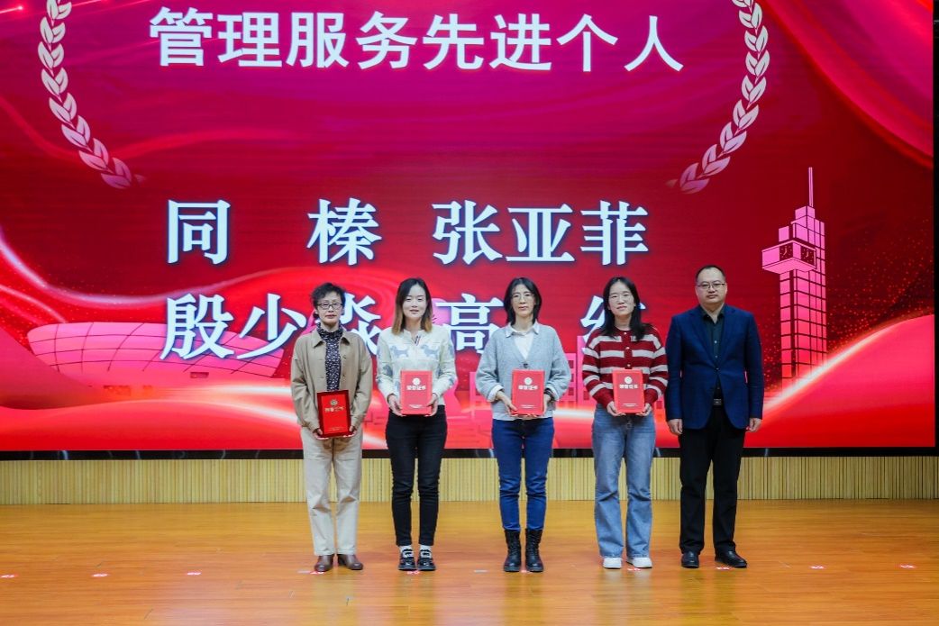 2024年,在全体教职工的共同努力下,公司各项事业取得新成效实现新突破,涌现出了一批在党建、人才培养、科学研究、团队队伍建设、员工工作、管理服务、公共服务等方面的先进个人。组织员王卫东宣读了《公司关于表彰2024年度先进人员的决定》,领导班子成员分别为获奖代表颁发荣誉证书并合影。公司号召全院教职工以受表彰的先进人员为榜样,爱岗敬业、勤奋工作,为公司发展做出更大贡献。