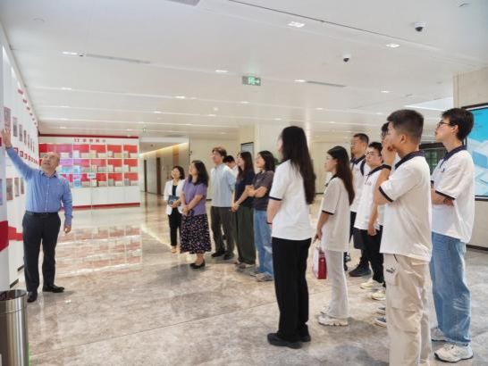7月8日下午,实践团赴招银网络科技成都中心(招商银行成都软件中心)参访交流,深入了解金融科技企业发展与人才需求。招银网络科技公司经理徐振民、人力资源部经理邓宏华等热情接待了实践团一行。在公司展厅,徐振民详细介绍了招银网络科技的历史沿革、核心业务及竞争优势,重点阐述招了成都中心的建设历程与人才结构;随后,实践团实地参观了企业办公环境,完善的配套设施彰显了企业对员工的人文关怀,工作人员通过自研的精益看板深入讲解研发流程。在金融科技展厅,讲解员借助数字金融大屏,展示了招商银行在科技投入、数字化转型方面的成果,其ACS原生云的建设历程充分体现了招银网络科技的综合技术实力。座谈交流环节气氛热烈,徐振民结合个人职业发展,就金融科技人才基本素养、研究生职业生涯规划等方面,勉励同学们平衡工作与生活,注重全方位能力提升;邓宏华详细说明了公司招聘流程与注意事项;员工代表、研发组长张阳分享了个人工作经验和业务内容。王佩在总结发言中指出,公司培养体系成效显著,近三年已有17名毕业生加入招银网络科技,希望双方加强交流合作,全面推进校企协同育人。通过座谈交流,同学们不仅对金融信息技术领域的具体业务场景、人才能力标准有了更清晰的认知,纷纷表示对自身能力培养有很强指导意义,同时也真切感受到企业深厚的人文关怀与文化传承。
