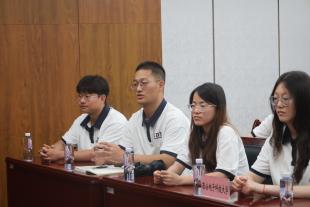 7月8日上午,实践团走进电子科技大学(简称成电),与成电计算机科学与工程公司研究生开展联合主题党日活动,并一同参观电子科技博物馆和相关实验室。在成电行政楼会议室,两校同学围绕“研究生党员先锋模范作用发挥”畅谈深刻感悟,就“党建与科研深度融合”话题展开热烈讨论。随后,在成电计科院硕博士的带领下,实践团参观了计算机科学与工程公司展厅及实验室,成电博士生方凯鹏、刑佑广为同学们演示了人形机器人及机械臂抓取物品的具身智能场景。在博物馆,讲解员引领实践团参观了通信设备、雷达部件、电子元器件、测量仪器、广播电视、计算机软硬件等大量珍贵藏品,重点介绍了成电本科毕设相关展品,以及参与过抗洪、地震救灾工作的激光通信设备和无人机藏品。沿着科技变革脉络,同学们领略了成电人勇于探索、敢于创新、艰苦奋斗的科学精神。