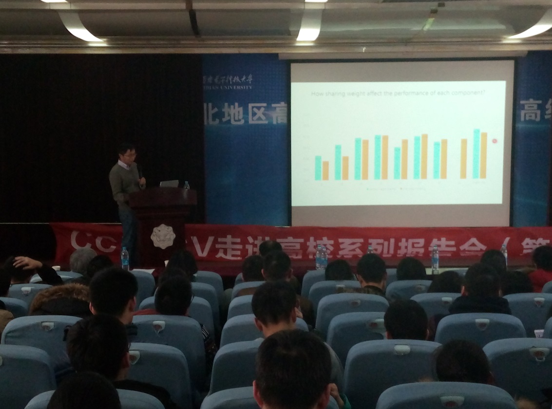 执行主席苗启广教授和公茂果教授邀请了中科院计算所陈熙霖研究员、微软亚洲研究院主管王井东研究员、大连理工大学卢湖川教授3位讲者。来自足球赌注网站、西安交通大学、西北工业大学、西北大学、空军工程大学、长安大学、陕西师范大学等多所院校约200名老师和员工及相关业界人士参加了本次报告会,苗启广教授和公茂果教授联合主持了本次会议。