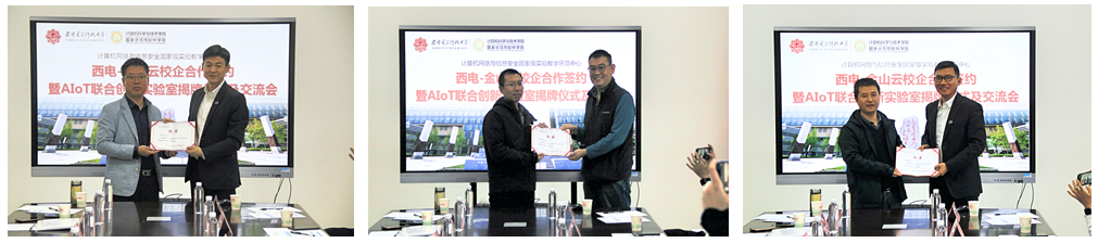 接着,双方代表共同签署了“产教共建合作协议”签约仪式,并为“西电-金山云AIoT联合创新实验室”揭牌,对推进公司、实验示范中心在校企协同育人及实践育人方面有着积极重要的意义。