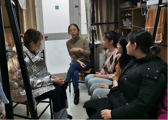12月11日,公司党委副书记张莹莹走进海棠公寓7号楼530宿舍,针对就业择业问题与宿舍全体同学进行深入交流。三年级的同学正处于选择的关键时刻,张莹莹勉励大家慎重选择人生方向,下苦功,强信心,加强与师长的交流沟通。