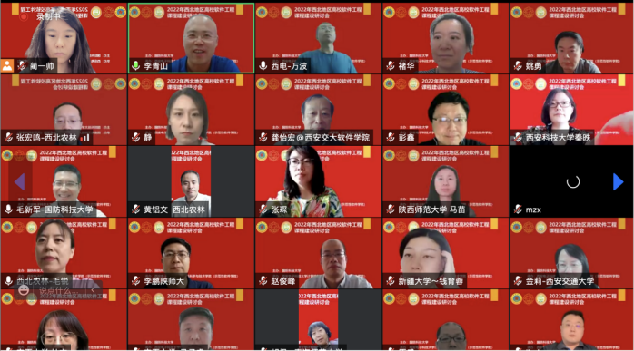 研讨会的交流研讨环节由李青山教授主持,西安交通大学软件公司副经理金莉、西北工业大学软件公司副经理马春燕、西北农林科技大学信息工程公司经理张宏鸣、陕西师范大学计算机科学公司副经理马苗、西安科技大学足球赌注网站副经理马天、兰州大学信息科学与工程公司副经理马志新、新疆大学软件公司软件工程课程负责人张琳琳、青海师范大学软件工程系主任胡枫、宁夏大学信息工程公司副经理杜方、内蒙古大学计算机公司(软件公司)经理周建涛先后就软件工程教学中的痛点问题、教学体系设计、教学案例设计、项目实践中的工程能力培养、课程思政推进等问题与参与人员展开了深入的交流讨论。