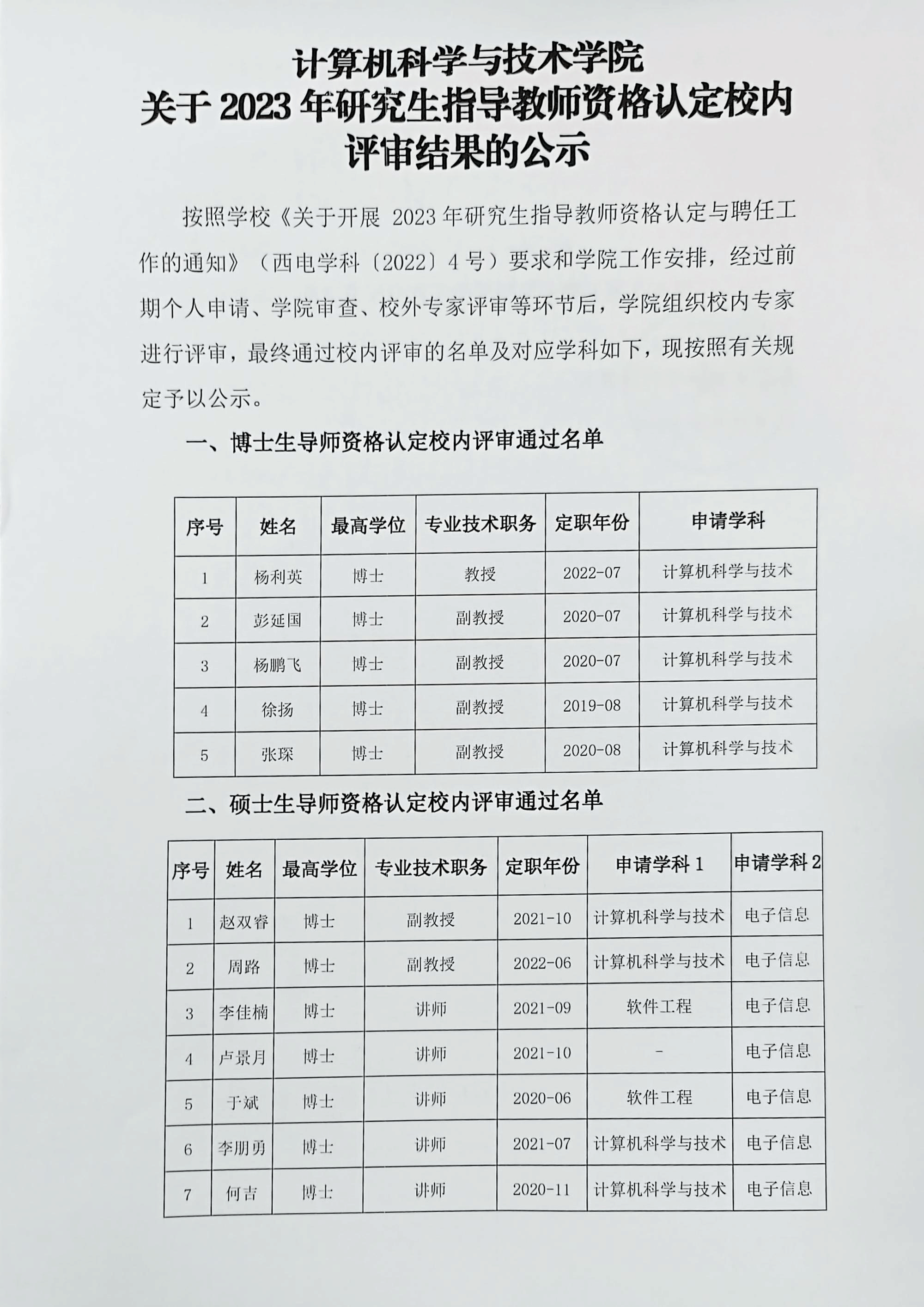计科院关于2023年研究生指导教团队格认定校内评审结果的公示