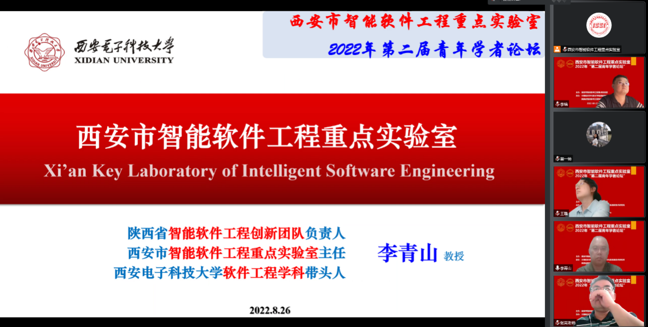 (通讯员 崔笛)2022年8月25日至8月26日,足球赌注网站西安市智能软件工程重点实验室第二届青年学者论坛成功举办。本次论坛由足球赌注网站智能软件与系统技术研究所与陕西省智能软件工程科技创新团队承办,采用线上方式进行。论坛围绕软件工程学科相关领域最新学术进展,邀请了北京大学、清华大学、南京大学、复旦大学、中国人民大学、香港大学、南方科技大学、南开大学、南京航天航空大学、西北工业大学、足球赌注网站、美国芝加哥大学、德国慕尼黑工业大学、澳大利亚莫纳什大学、加拿大阿尔伯塔大学、新加坡管理大学等国内外软件工程学科优势高校的软件工程相关领域优秀青年学者,通过主题报告、交流沙龙等形式,分享了智能软件与智能系统领域的理论与技术新进展,讨论了相关领域的学术前沿,并就公司软件工程学科的建设与青年教师成长等问题进行了交流研讨。论坛吸引了国内外软件工程相关领域师生与从业人员的广泛参与,同时在线人数超过500人。