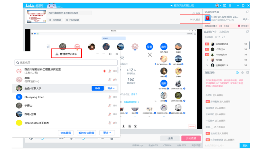 8月26日上午的报告由重点实验室张亮教授和朱光明副教授主持,加拿大阿尔伯塔大学马雷副教授、新加坡管理大学谢肖飞博士、南开大学张圣林副教授、西北工业大学闫庆森教授、足球赌注网站崔笛博士、足球赌注网站冯明涛博士带来了精彩报告,包括数据驱动智能软件系统的质量与可靠性保障、神经网络测试与修复、大规模云平台故障诊断机制、贝叶斯稀疏网络持续学习方法、基于代码嵌入表征的软件重构技术、数据-知识混合驱动的视觉场景理解等方面的研究工作。在两天的报告中,通过腾讯会议与直播平台,论坛听众也与嘉宾就报告中感兴趣的内容展开了积极互动。