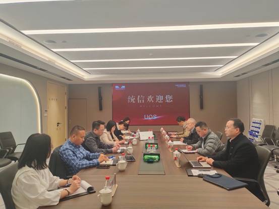 3月24日上午,计算机科学与技术公司党委书记李青山、正处级组织员张卫东、分管特色化示范性软件公司建设的副经理李瑞、实践教学中心副主任黄伯虎一行赴北京经开区国家信创园与统信软件技术有限公司开展特色化示范性软件公司建设工作推进会,就开展校企合作、实施产教深度融合、创新软件人才培养模式等事宜进行了研讨。统信软件高级副总经理许可、服务中心总经理石丰、教育事业部总经理吕彬彬、政府事业部总监郑传荣、经理李文娇等参加了研讨交流。
