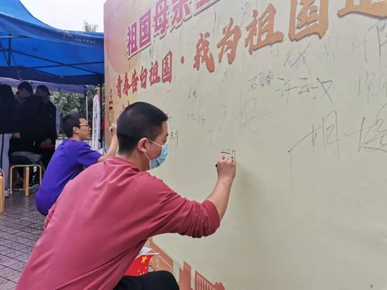 “祖国母亲,生日快乐!”“祝愿祖国越来越好!”“我的祖国,爱你一万年”……在“青春告白祖国”的签名墙上,同学们写下自己对伟大祖国繁荣昌盛,富强美好的祝愿,以青春之名,深情告白祖国。期间,公司领导与老师们来到活动现场,也纷纷在祝福墙上签名,并与现场同学合影,师生同框,共同为庆祝新中国成立71周年献上最美祝福。