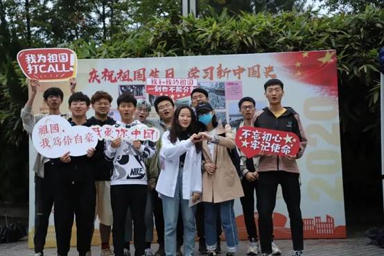 同学们举着我爱你中国”“祖国,我为你自豪”“我和我的祖国一刻也不能分割”的字牌,在新中国史大事记主题展板前纷纷合影留念,表达青年学子热爱祖国的赤子之心和对祖国母亲的美好祝福。