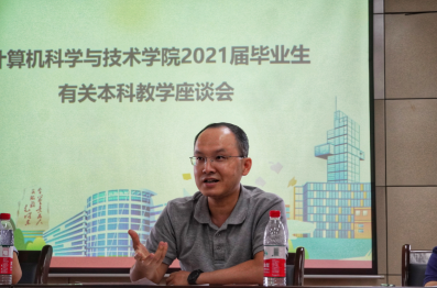 座谈会上,各专业方向毕业生代表依次发言,围绕课程设置、教学管理、教学改革、毕业设计、课外实习等方面提出意见和建议。教改班2017级毕业生张瑞方围绕教改班的课程、学分设置提出建议,希望课程设置能更加多样化。物联网2017级优秀毕业生文悦力,建议物联网专业的课程设置中能加入更多具有物联网特色课程及实验。