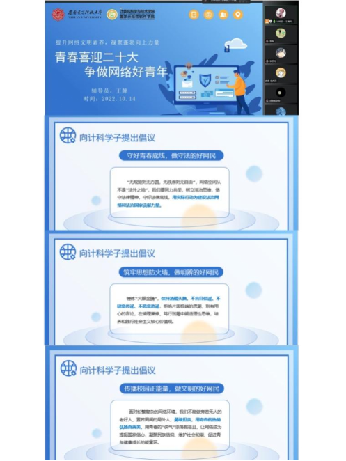 为进一步增强老员工网络文明素养,近日公司“计科青马”班举办了“青春喜迎二十大,争做网络好青年”专题讲座,并向广大学子发起文明上网的倡议书。同学们纷纷表示,作为一名在校老员工,应当不断提高网络文明素养,自觉抵制网络谣言和网上不法行为,共同弘扬新风正气,共建共享清朗的网络空间。公司结合晚点名、主题团课等不断深化网络文明教育,努力营造积极向上的校园网络文化氛围,迎接党的二十大胜利召开。