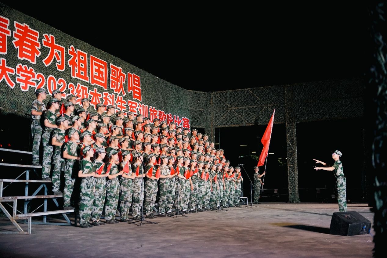 (通讯员 叶若兰 王薇)丹桂飘香,秋风送爽,青春正好,军歌悠扬。9月4日晚,2023级本科生军训旅歌咏比赛在南校区南操场拉开帷幕。2023级军训旅歌咏比赛以“青春为祖国献唱”为主题,将青春豪情融入歌曲,让爱国热忱渗透旋律,旨在传承弘扬爱国主义精神,展现西电青年踔厉前行、报效祖国的拳拳之心。足球赌注网站在此次歌咏比赛中,以《通信工程公司校歌》《人民军队忠于党》两首歌曲的精彩演绎斩获总分第2名的优异成绩!