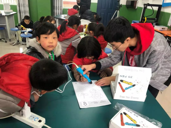 志愿者指导小员工们使用3D打印笔