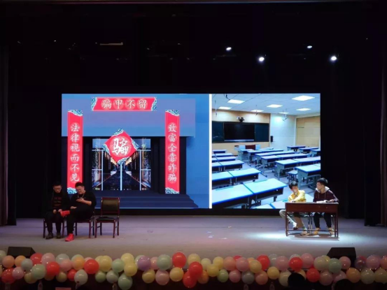 190301、190302团支部为大家带来的话剧《电信诈骗》以诙谐幽默又有些无厘头的表演方式再现了电信诈骗案件,使同学们在阵阵笑声中增强了法制意识和财产安全意识。
