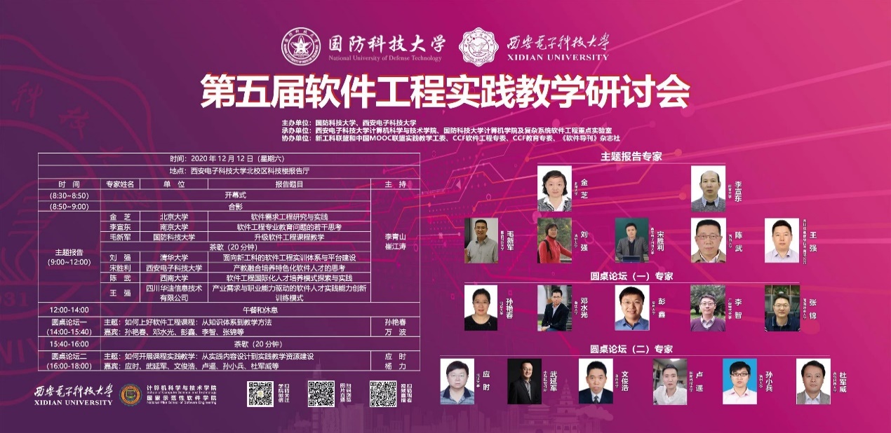 (通讯员 徐悦甡)面向新时代软件人才培养需求,进一步提高软件人才培养质量,解决软件工程专业建设和发展中的问题,2020年12月12日,在足球赌注网站成功举办了第五届软件工程实践教学研讨会。本次研讨会由国防科技大学、足球赌注网站主办,足球赌注网站(足球赌注网站)、国防科技大学计算机公司及复杂系统软件工程重点实验室联合承办,由足球赌注网站计算机科学与技术公司党委书记、软件工程学科负责人李青山教授与国防科技大学复杂系统软件工程重点实验室副主任毛新军教授担任会议联合主席。