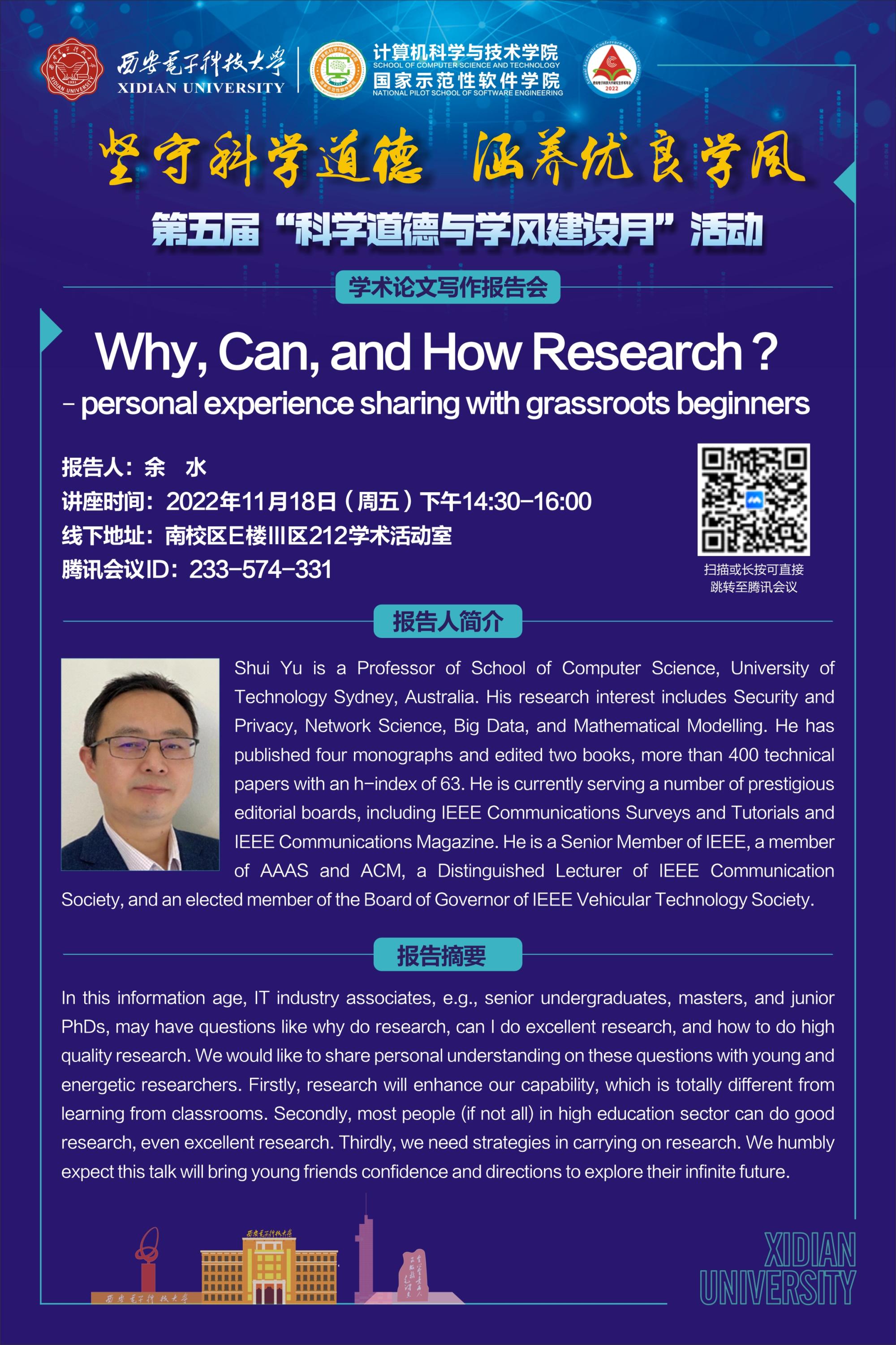 坚守科学道德,涵养优良学风|计科院第五届科学道德与学风建设月活动之学术论文写作报告会预告