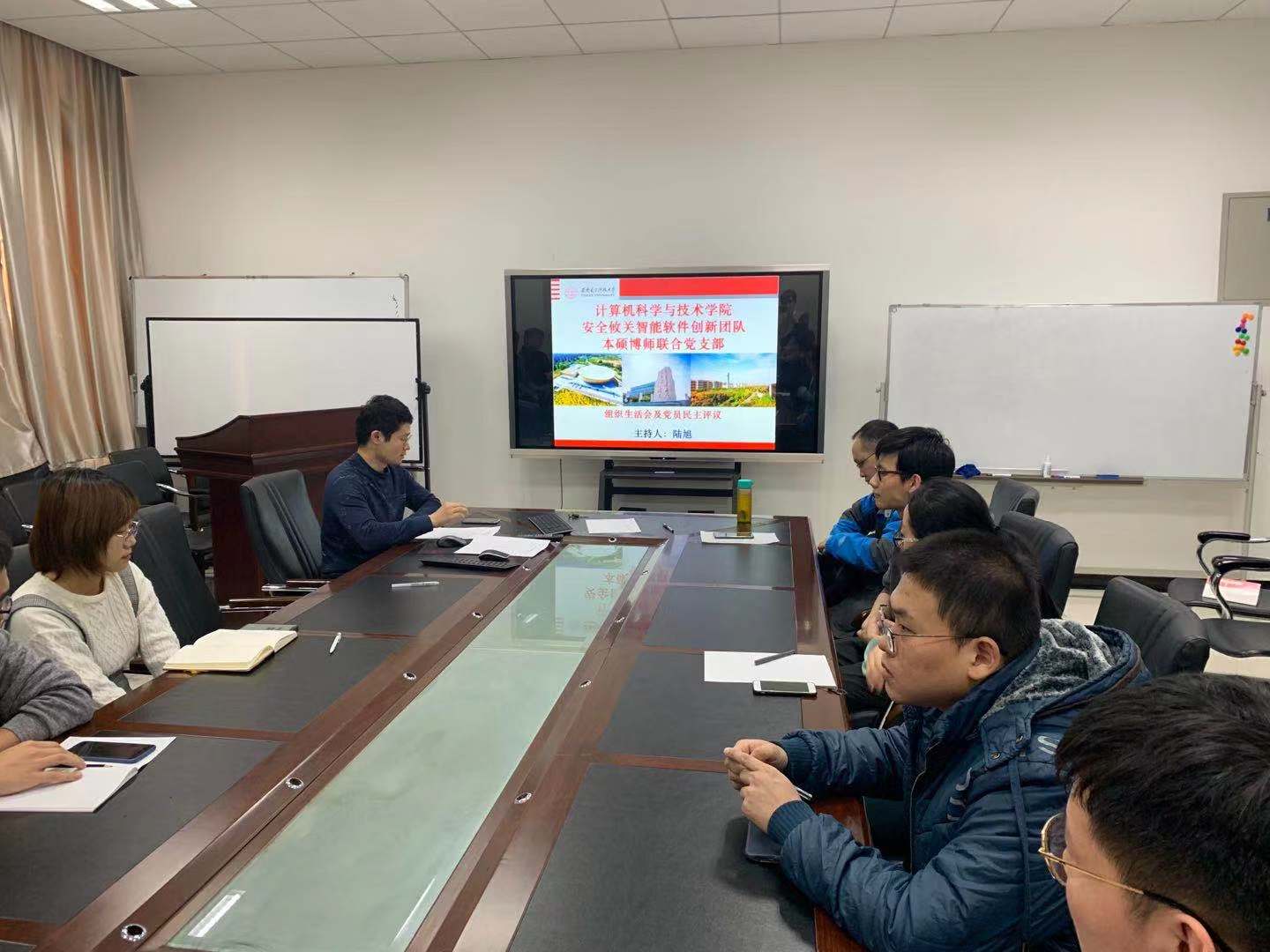 (通讯员 郭佳琦)2019年12月5日下午,为贯彻公司党委关于基层党支部组织生活会和开展民主评议党员工作部署,足球赌注网站安全攸关智能软件创新团队本硕博师联合党支部在主楼四区203会议室,召开支部组织生活会并开展民主评议党员。党支部书记陆旭主持了本次会议,公司纪委委员、计算机科学系主任王小兵参加会议并进行总结发言。