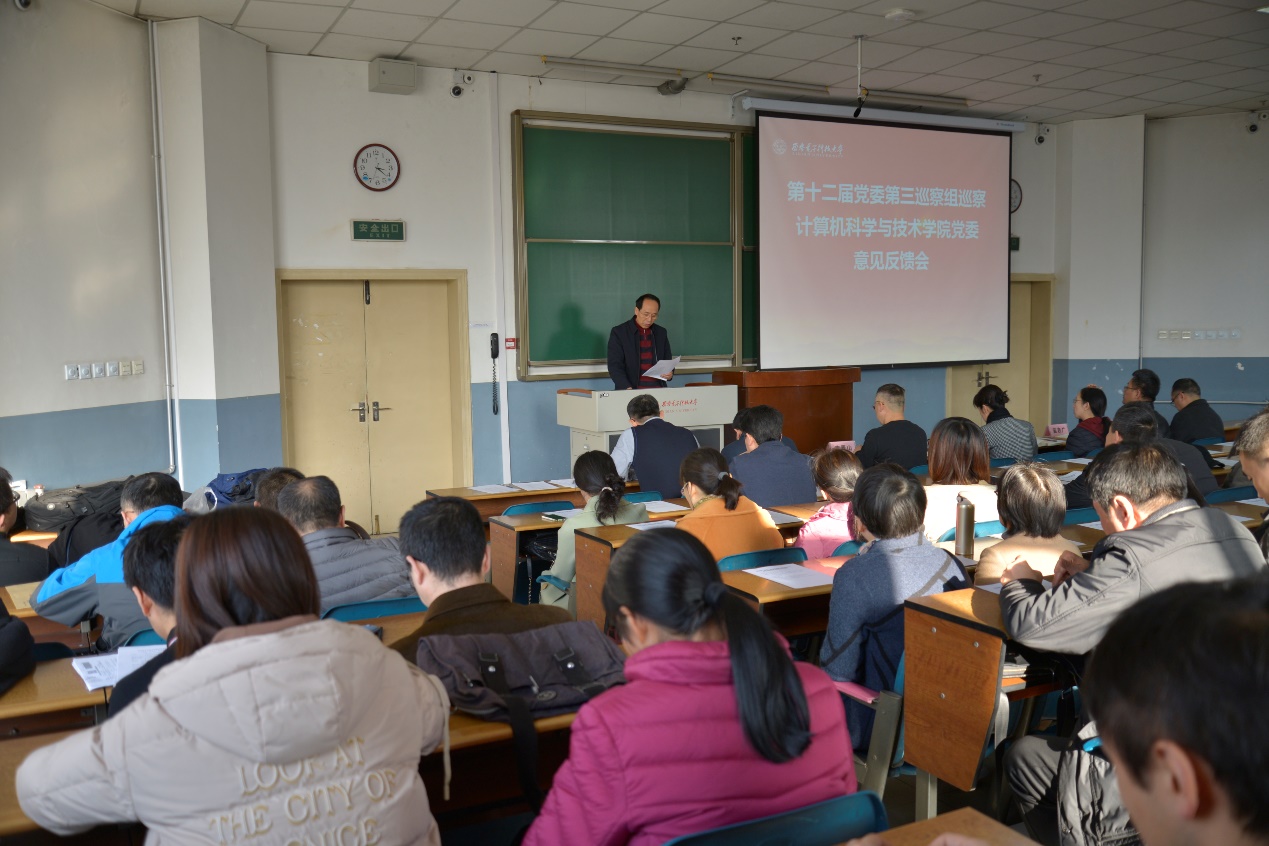 (通讯员 同榛)12月4日下午,公司第十二届党委第二轮第三巡察组巡察计算机科学与技术公司党委意见反馈会在北校区阶梯教室505召开,公司党委副书记、纪委书记、巡察办主任任应坤,巡察组组长吴秀霞,校巡察工作办公室相关人员,计科院全体党政领导班子成员与公司教职工代表参加了会议。会议由足球赌注网站执行经理崔江涛主持。