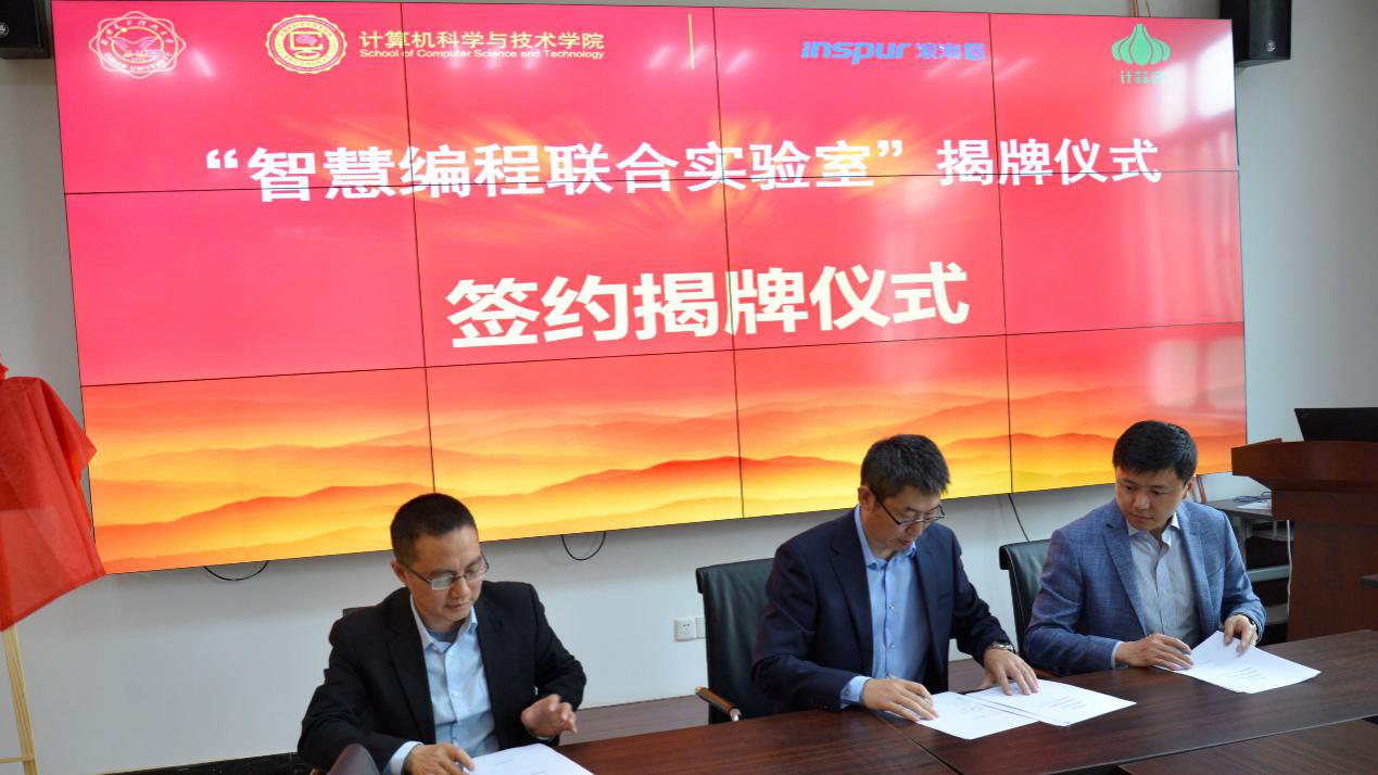 崔江涛首先介绍了公司人才培养的基本情况,他表示此次与浪潮和矩道优达合作建立联合实验室是大家共同合作的结果,他希望通过联合实验室的建设,推动教育课堂改革,促进计算机导论与程序设计基础编程课程的教学模式创新,使得信息技术和智能技术深度融入公司产品全过程,提高公司人才培养水平,促进高校人才培养与企业发展的合作共赢。