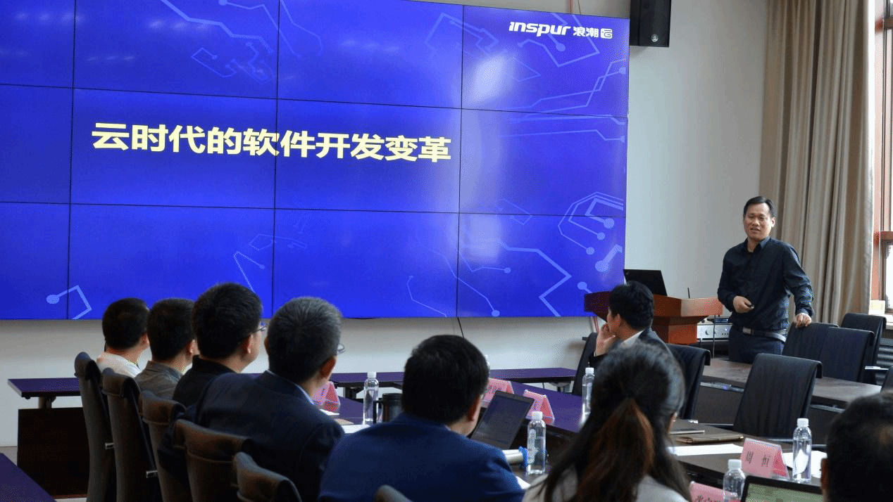 揭牌仪式结束后,浪潮开发者中心总经理王立军和计蒜客首席布道师钦恩强分别为在座的各位老师带来名为“云时代下的软件开发变革”和“聚焦智慧编程,助力产教融合”的精彩报告。公司计算机导论与程序设计语言课程组长万波谈到,“智慧编程联合实验室”的建立将进一步推动信息技术与公司产品深度融合,为智慧课堂的建设提供软件开发服务等云资源,计蒜客设计的在线编程和实践环境平台,趣味盎然的交互方式可以让同学之间在一起轻松学习。在场的其他老师也参与了此次大讨论,周恒和杨斌从技术支持角度讲述了智能教室和编程基础课程的发展方向,三方表示未来将加强协同育人项目的合作,以产业和技术发展的最新需求推动高校人才培养改革,促进校企共同发展。