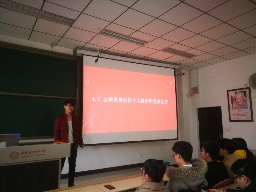 会议第二阶段,支部组织党员开展党员民主评议和民主测评。党支部书记郑守建、党支部支委曹佳妮、刘肯东带头展开自我批评,全体党员以此进行个人自评和党员互评。在民主评议过程中,每位党员都能结合自己学习、生活等实际表现,用具体事例说话,指出自己和其他党员同志存在的问题和不足。