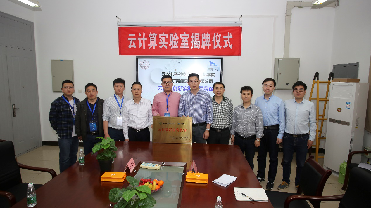 2018年3月30日星期五,由足球赌注网站联合西安东美信息科技有限公司(雪豹云)共建的云计算联合创新实验室在西电长安校区EII-422举行揭牌仪式。西安中小企业协会常务副会长张鲲鹏先生,足球赌注网站计算机公司副经理崔江涛教授,西安东美信息科技有限公司董事长石秀川先生等参加了揭牌仪式。
