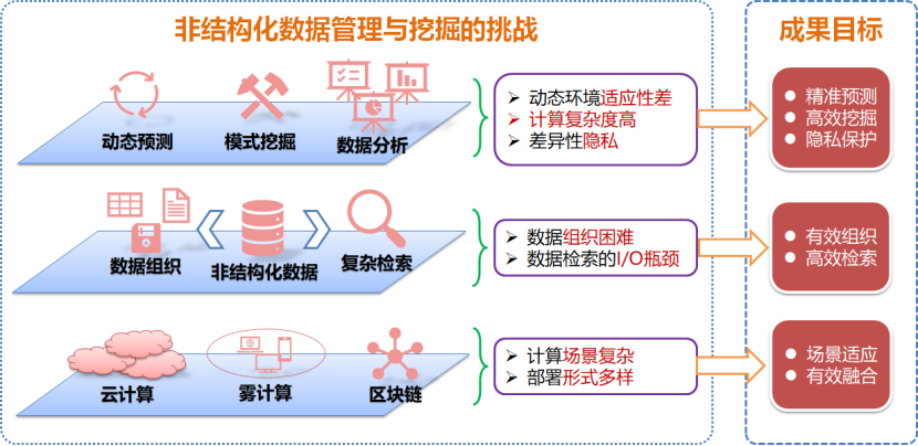 崔江涛教授牵头完成的“非结构化数据管理与挖掘关键技术及应用”项目针对网络空间中的非结构化数据主要存在高维向量(如图像、音频、文本)、图(如社交网络和万维网)、序列(如DNA、IoT信号)等多种模态,面向非结构化数据在存储、管理、挖掘与分析中面临诸多挑战,重点解决大规模复杂数据间的关联性表达缺失造成组织存储困难和检索性能低下、网络环境中网络攻击频发造成云端复杂数据的隐私泄露风险、面向复杂数据的分析方法存在计算复杂度高(指数级计算复杂度)的弊端、复杂数据挖掘方法的竞争环境适应性差等关键科学问题。非结构化数据的存储与挖掘是当前国际上的学科前沿热点,也是国家和行业重大需求领域。成果对非结构化数据的管理具有重要科学意义和应用前景,也契合于国家对于大数据和人工智能发展的战略需求。