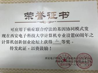 3.研究所师生团队研发的《可应用于癌症联合疗法的基因协同模式发现》系统,在足球赌注网站计算机专业设置60周年之计算机创新创业论坛上,获得貮等奖。