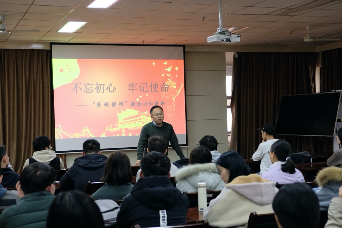 随后,李书记谈到,本硕博师联合党支部的初心是在本科生、硕士生、博士生、青年教师以及广大非党员同学间传承优良的支部文化,引领各年级同学共同进步。高年级的硕博研究生通过党建生活,在学业、科研、生活等方面传、帮、带低年级员工;党员同学将自身在支部中的成长和进步分享给非党员同学,体现党员对非党员的传、帮、带作用;青年老师通过支部活动与员工深入接触员工,发挥科研育人作用。通过在党支部内部形成从优秀青年教师、博士生、硕士生再到本科生的党员梯队,增进本科与研究生党员、教师党员的交流,培育本硕博师贯通、逐级带动辐射的育人环境,形成有传承的支部文化和党建文化。