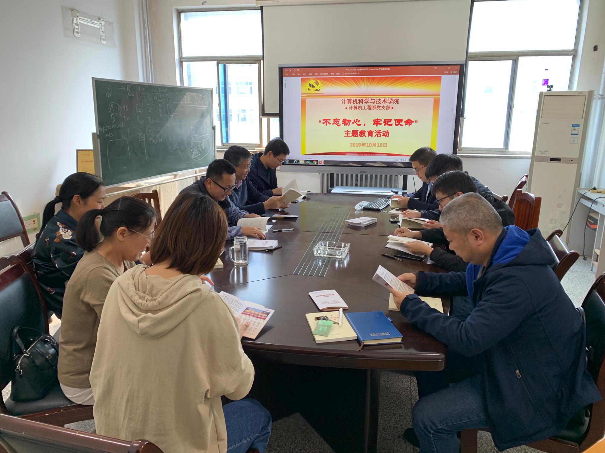 首先,李龙海同志带领参会党员集体学习了《习近平关于“不忘初心、牢记使命”论述摘编》的主要章节,大家对“不忘初心、牢记使命”的主题教育精神有了更深刻的认识。中国共产党代表着中国最广大人民的根本利益,共产党人的初心和使命,就是为中国人民谋幸福,为中华民族谋复兴,这个初心和使命是激励中国共产党人不断前进的根本动力。自建校以来,西电人一路跟随中国共产党、与共和国同行,面向国家和国防重大需求,务实创新,研制了一批批重大科研设备和成果、培养了大量优秀的科研及管理人才,用实际行动践行使命,弘扬西电精神。李龙海同志谈到,作为一名党员教师,应时刻牢记育人之初心与使命,认真钻研、努力创新,在传道授业中影响员工形成重要的伦理观和服务社会、服务人民、服务国家的责任意识,为实现"两个一百年"的奋斗目标提供源源动力。