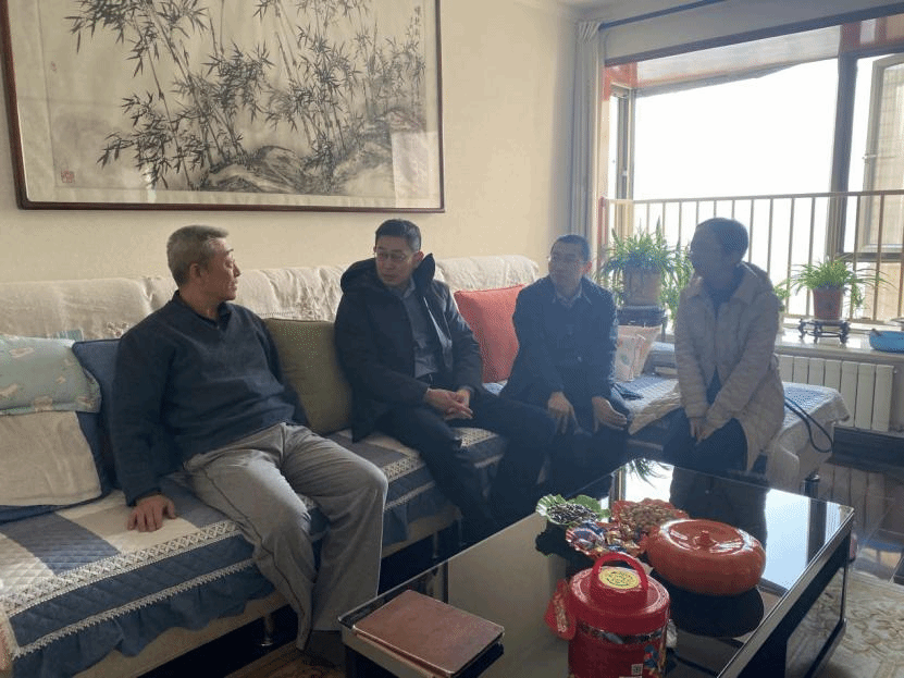 2月8日-9日,公司党委书记李青山、执行经理崔江涛分别带队,公司党委副书记张莹莹、副经理沈玉龙、副经理赵韩强、副经理宋胜利、副经理万波以及副处级组织员张卫东分别陪同,逐户拜访慰问了于晓飞、王宝树、周利华、马玉祥、宋林征、蒋洪、李革建等老领导和老教师,因侯伯亨老师身体不佳尚在重症监护室,班子专程前往医院探望,在家属的陪同下,与主治医生进行深入交谈,了解侯老师的病情,送上组织的问候与关心。在与老领导、老教师交谈中,班子成员关切询问他们的生活起居、身体状况等情况,还有什么实际困难...,与他们拉家常、话发展,向他们介绍公司各项事业的发展情况和今后的工作安排,听取他们对公司发展建设的意见和建议,感谢他们多年来对公司发展所倾注的心血和贡献,希望他们一如既往关心支持公司发展,并为他们送上慰问品和春联,衷心祝他们健康长寿、新春快乐。