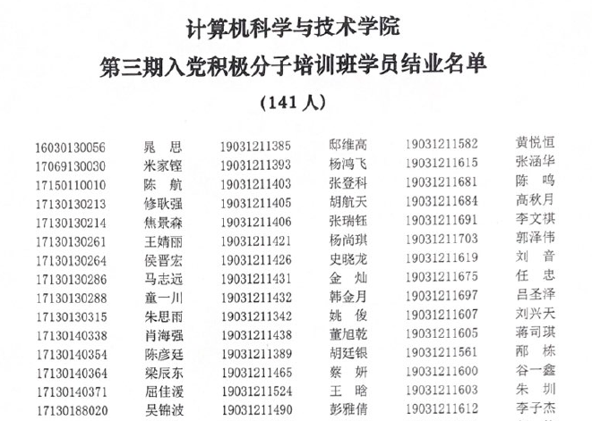 足球赌注网站第三期入党积极分子培训班学员结业名单