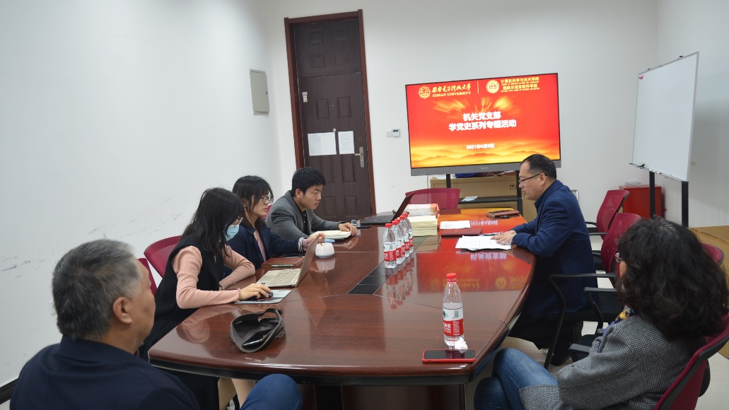 机关党支部书记赵韩强首先传达了习近平总书记在党史学习教育动员大会上的重要讲话精神,教育部党组书记、部长陈宝生同志在教育部召开党史学习教育动员大会的讲话精神,公司党委书记查显友同志在公司召开的党史学习教育动员大会上的讲话精神,带领全体党员深入学习了《公司关于开展党史学习教育的实施方案》,从六个方面讲解了学习内容,分阶段安排了本年度学习安排,分层次讲述了五个方面重点任务。同时,与会同志集中学习了习近平总书记致厦门大学建校100周年的贺信。他谈到,“学党史”是贯穿2021全年工作的一项重大政治任务,机关支部党员同志要提高政治站位,统一思想,自觉学习习近平总书记重要讲话精神,全力学好党史、学习老一辈革命的英雄事迹,践行“全心全意为人民服务”的办学宗旨,以良好的精神风貌和扎实的工作态度迎接建党100周年和建校90周年。