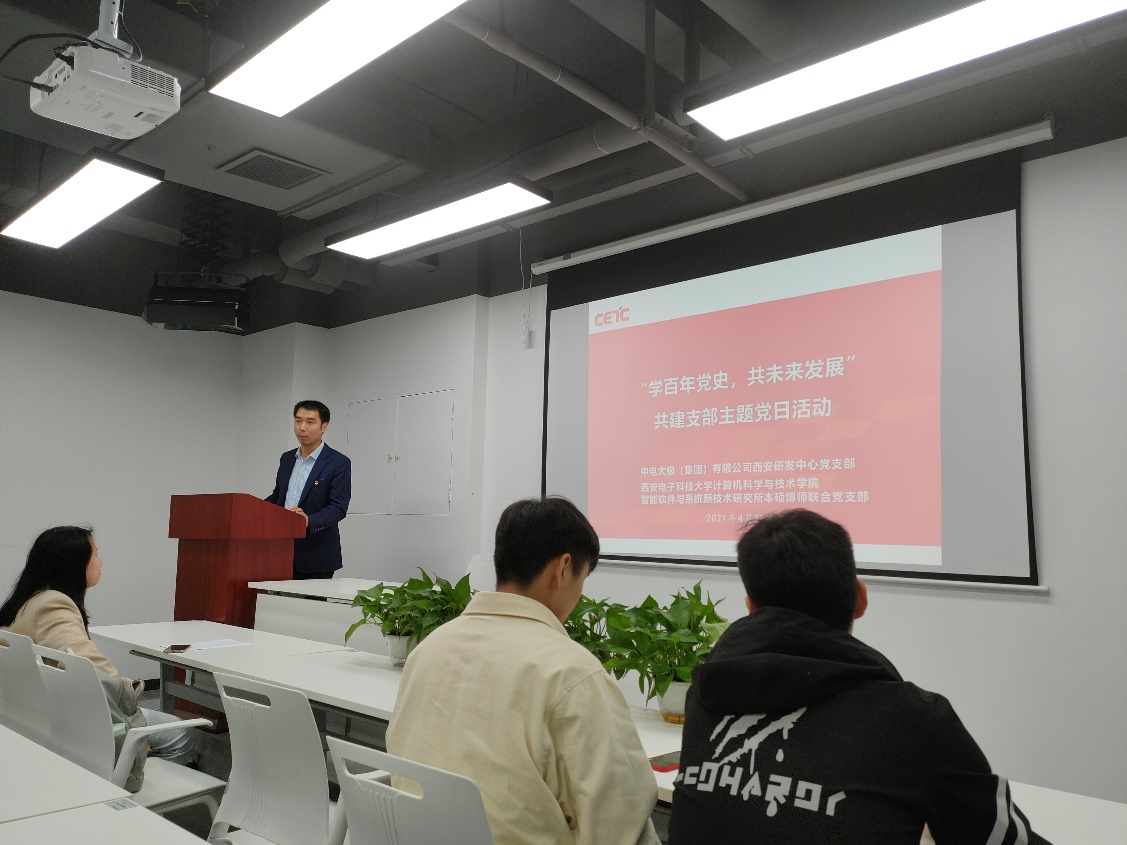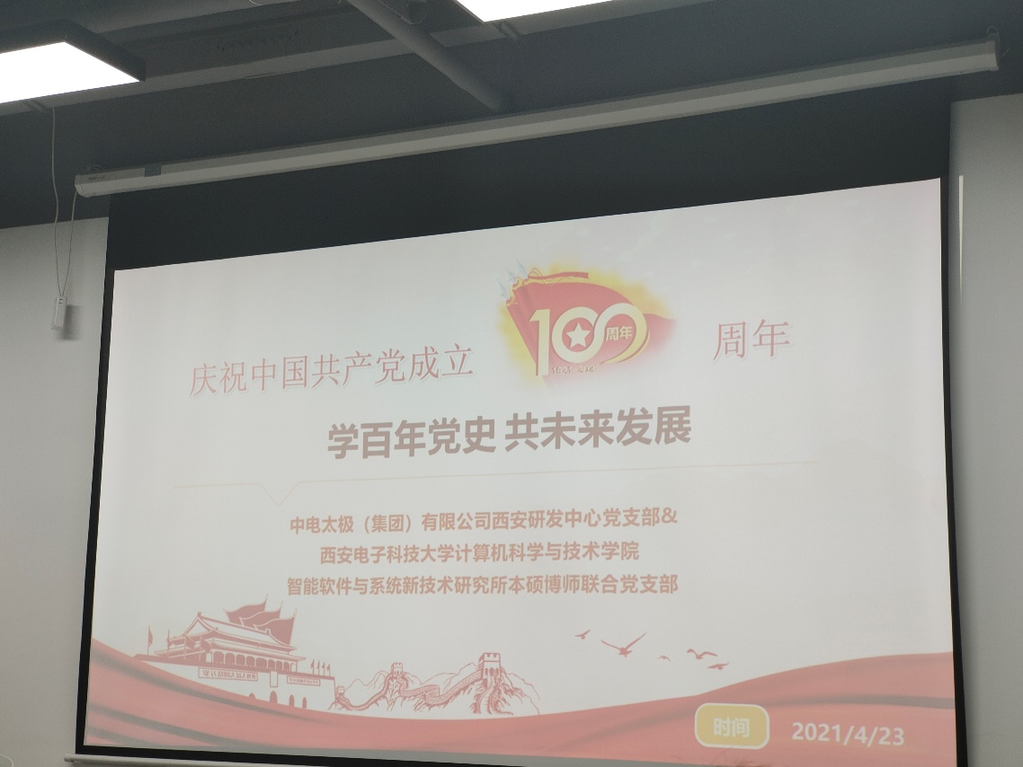 (通讯员 魏彬)为响应习近平总书记“学党史、悟思想、办实事、开新局”的号召,大力发扬红色传统、传承红色基因、赓续共产党人的精神血脉,足球赌注网站智能软件与系统新技术研究所本硕博师联合党支部和结对共建党支部——中电太极(集团)有限公司西安研发中心党支部于2021年4月25日联合开展“学百年党史 共未来发展”主题党日活动,用党的奋斗历程和伟大成就鼓舞斗志、明确方向,用党的光荣传统和优良作风坚定信念、凝聚力量,用党的实践创造和历史经验启迪智慧、砥砺品格。活动在中电太极(集团)有限公司西安研发中心开展,由支部书记王璐主持。