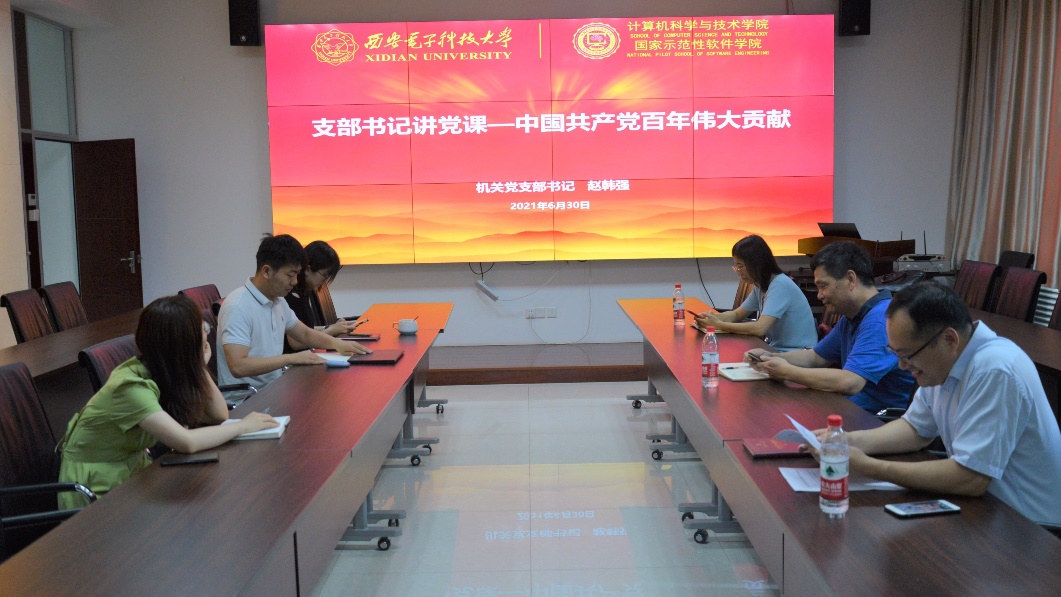 (通讯员 陈龙)为庆祝中国共产党成立100周年和建校90周年,学习习近平总书记关于“党史学习教育动员大会”的重要讲话精神,贯彻落实教育部和公司党委党史学习教育实施方案,6月30日下午,足球赌注网站机关党支部在北校区主楼二区319会议室召开了学党史系列专题活动,机关支部书记赵韩强讲了题为“中国共产党百年伟大贡献”党课,共同观看重大党史题材电影《百团大战》,引导党员从红色影片中汲取力量,践行共产党员的初心和使命。