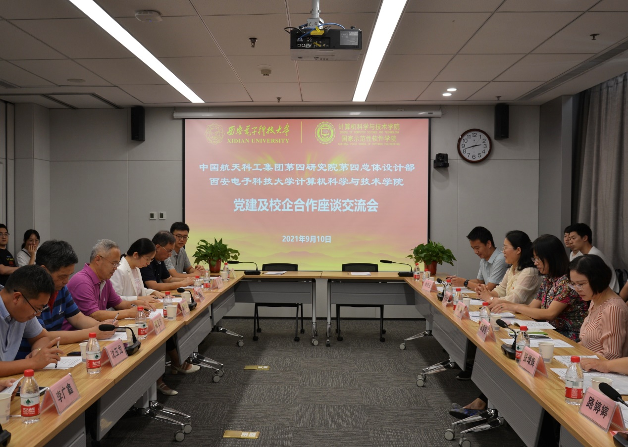 (通讯员 张志为)9月10日下午,中国航天科工集团第四研究院第四总体设计部与西电公司开展党建及合作座谈交流,并启动基层党支部结对共建,座谈会在北校区会议中心召开。四院四部党委书记周逸,党群、人事部门及信息中心等业务部门、基层党支部负责人,计科公司党委书记李青山、正处级组织员张卫东、副经理沈玉龙、党委副书记张莹莹,公司教师代表、硕博毕业生代表30余人参加了座谈。座谈会由张莹莹主持。