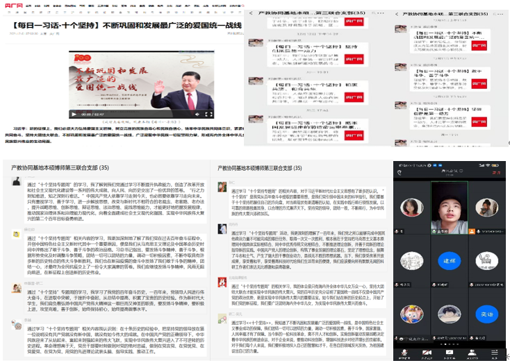 (通讯员 李鑫)12月9日至12月15日,足球赌注网站产教协同基地本硕博师第三联合党支部线上举办十九届六中全会精神专题学习周活动。此次活动分两阶段进行,第一阶段围绕“十个坚持”每日发布学习内容到支部群,党员们自主学习并交流学习心得;第二阶段支部集中学习,于12月15日讨论总结。