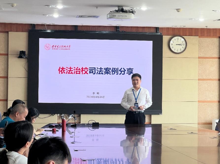 校法务办主任、国家安全人民防线领导小组办公室主任李明作了题为《依法治校司法案例分享》专题报告。李明从“高校校规校纪在诉讼中受法院审查”、“高校应尽到场所管理人的安全保障义务”等与教师职业息息相关的法律法规入手,结合司法实践常见案例,详细解读了新时代高校法治工作重点内容及如何防范和应对办学管理中的法规风险,进一步明确了高校法规风险及有效防范措施,增强了与会教师法治意识。