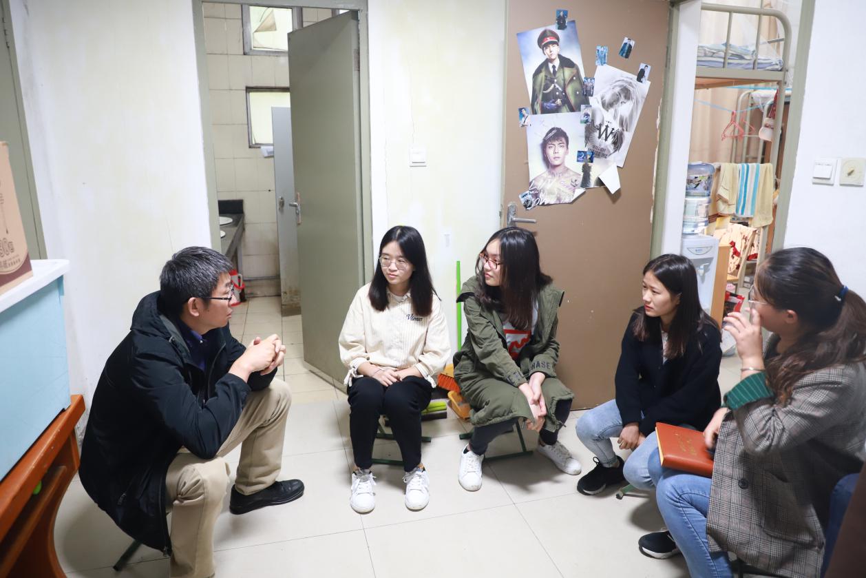 下午17:30,崔江涛来到1#II区201宿舍,与同学们面对面交流。他详细询问了同学们的学习生活情况,当得知宿舍中有两位同学通过研究生推免综合测评之后,崔江涛勉励同学要继续保持学习状态,以一名研究生的身份来要求自己。同时,他鼓励准备考研的同学要认真复习,也要学会释放压力,以积极的心态备考。