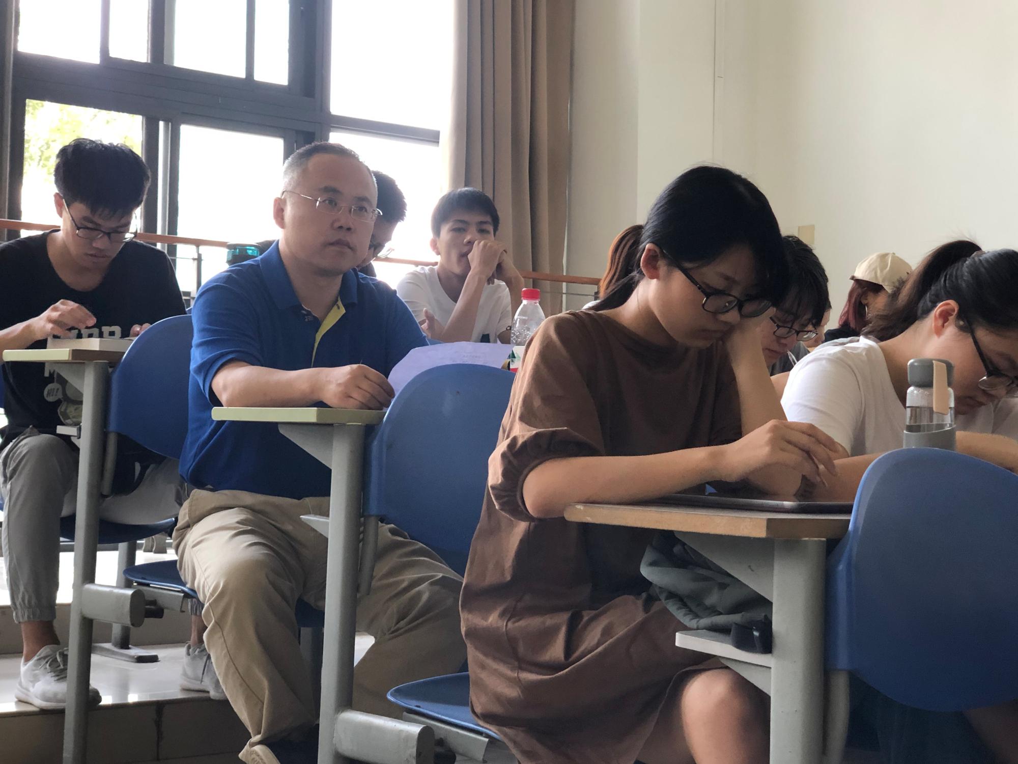 下午14时30分,李青山走进课堂,认真听取1713011班的《海量数据管理》课。课前,他与任课教师进行了详细交流,询问课程教学和1713011班员工学习等相关情况。课堂上,李青山一边听课一边认真地记录公司员工的上课状态。