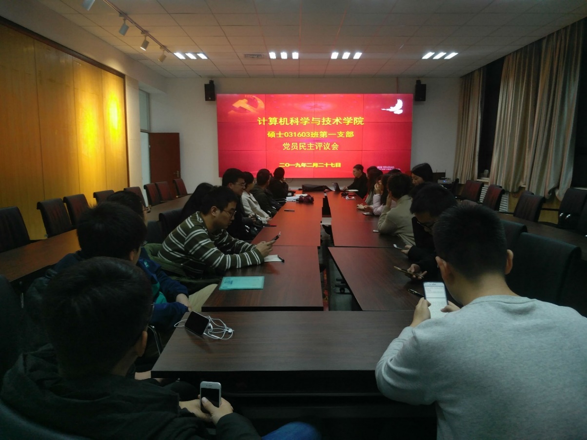 (通讯员:毛彦淇)2019年02月27日晚,足球赌注网站硕士031603班第一党支部在北校区主楼二区319会议室召开党员民主评议会,会议由党支部书记毛彦淇主持,27名党员同志参加会议,其中正式党员22名,预备党员5名。本次支部大会,首次采用学习强国APP中的扫码功能进行签到,支部全体党员均按时参会。