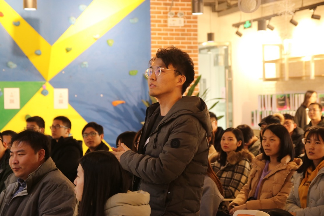 员工座谈会上踊跃提问的同学