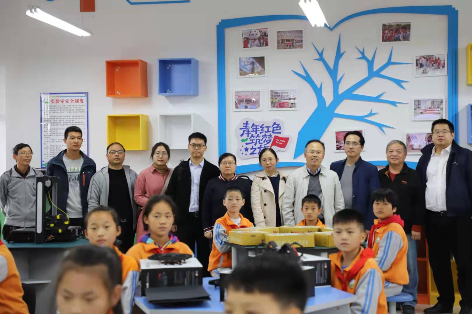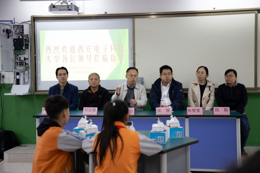 校工会扶贫办主任沈强介绍了青年红色筑梦之旅科创小屋的成立背景,并提出三点期望,一是维护好科创小屋硬件设施,二是利用好小屋先进科技优势,三是发挥好扶智扶志助推脱贫攻坚的支撑作用。“农掌门”科技团队负责人刘志镜教授鼓励小员工们在科创小屋里汲取养分、开拓眼界,并邀请同学们前往西电参观所负责团队实验室,了解计算机科学技术领域的科创成果。兴镇中心小学董事长仇林茂在仪式上表示,感谢西电及计科院对小学的大力支持,一定管好用好科创小屋,鼓励同学们利用好宝贵的学习资源,成长成才,将来考上西电这样的好大学。